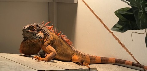 Mango is a red iguana. When the reptile expo came through town, my barely yet a man-child couldn’t resist purchasing the cute little red reptile. He already had a fairly decent size tank that housed his former pet snake (a whole other story) and couldn’t wait to fill it with another cold-blooded critter. In addition to the tank, which he lined with substrate to hold moisture, he had to equip the iguana with heat and light sources that provided UVB and UVA rays.