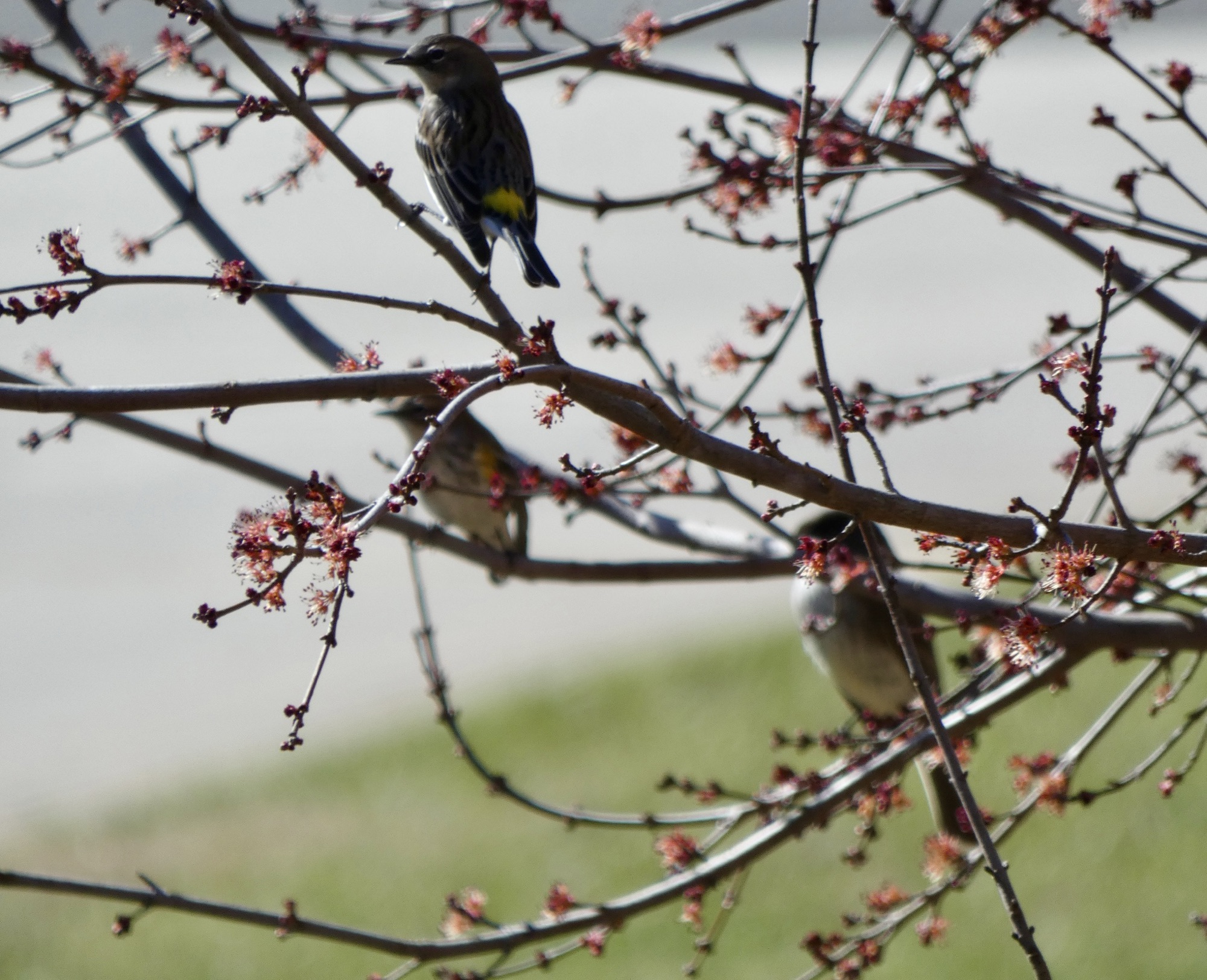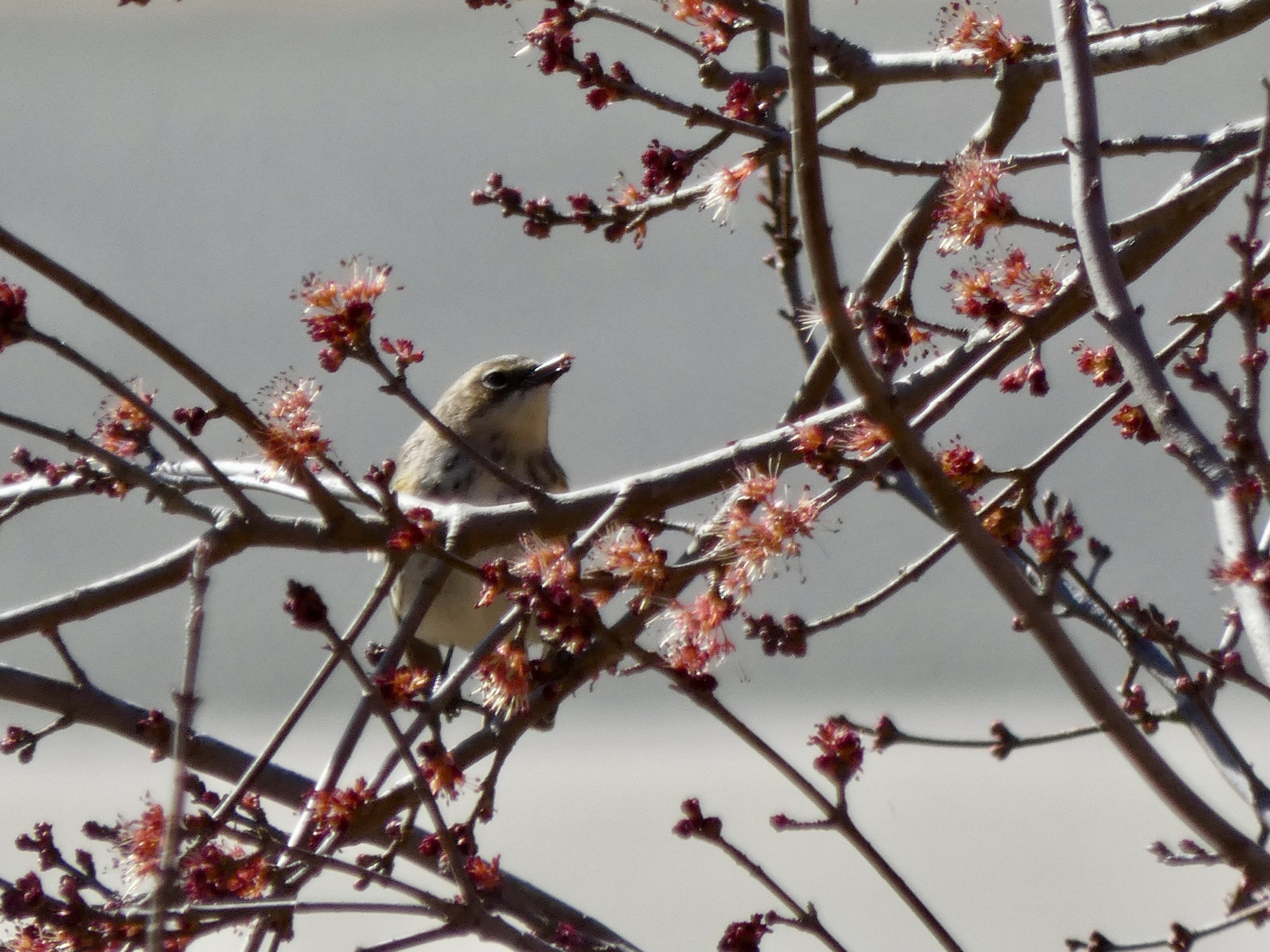 It is winter, yet this young maple tree has mistaken the relatively mild weather for spring. The birds love the tender blooms and the rare insect that buzzes about.