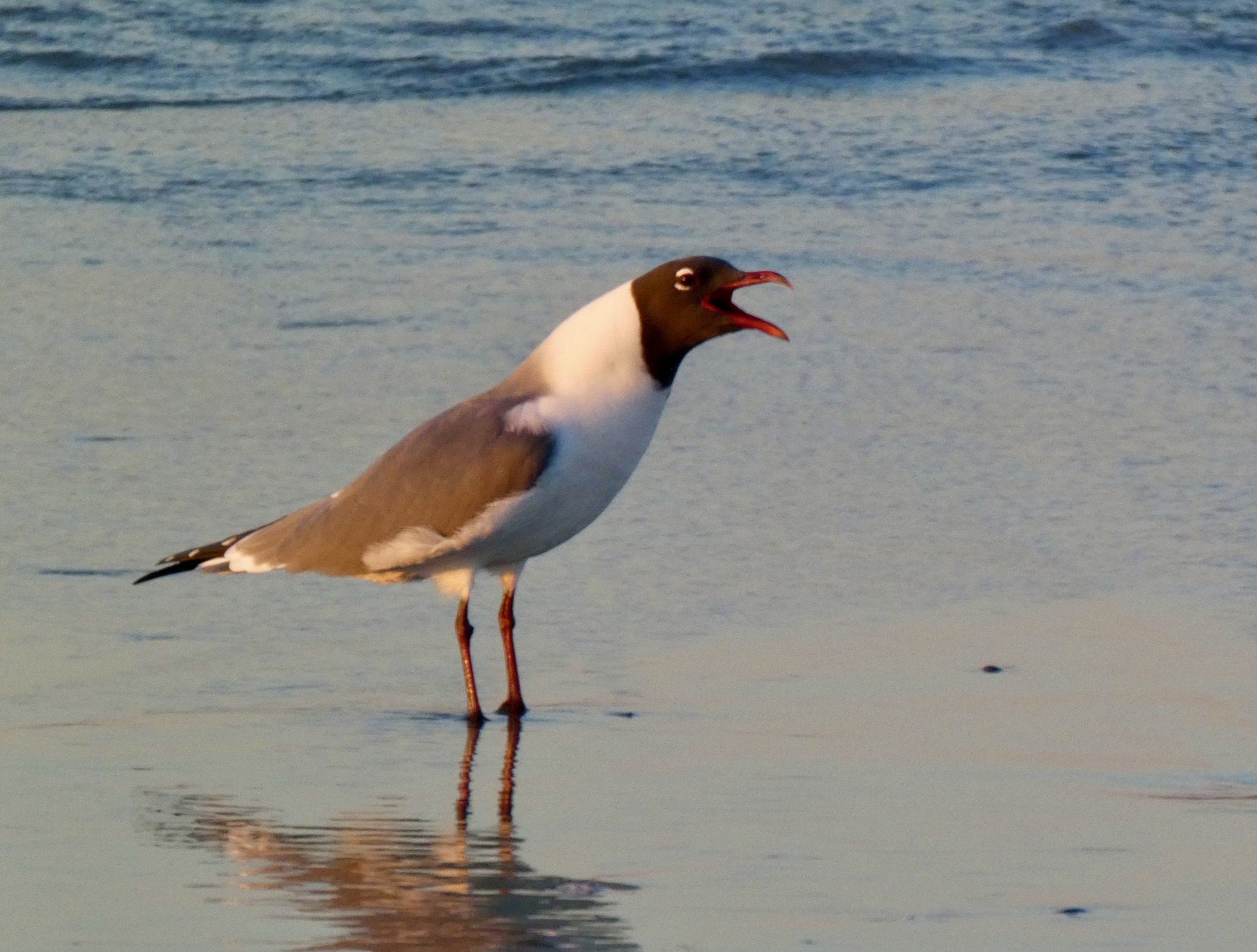 These are actually called “Laughing Gulls.” They are native to the Atlantic coast of North America, Caribbean and northern South America. They are very similar to the Eurasian black-headed gull. Perhaps I have finally introduced you to a new bird… 😉