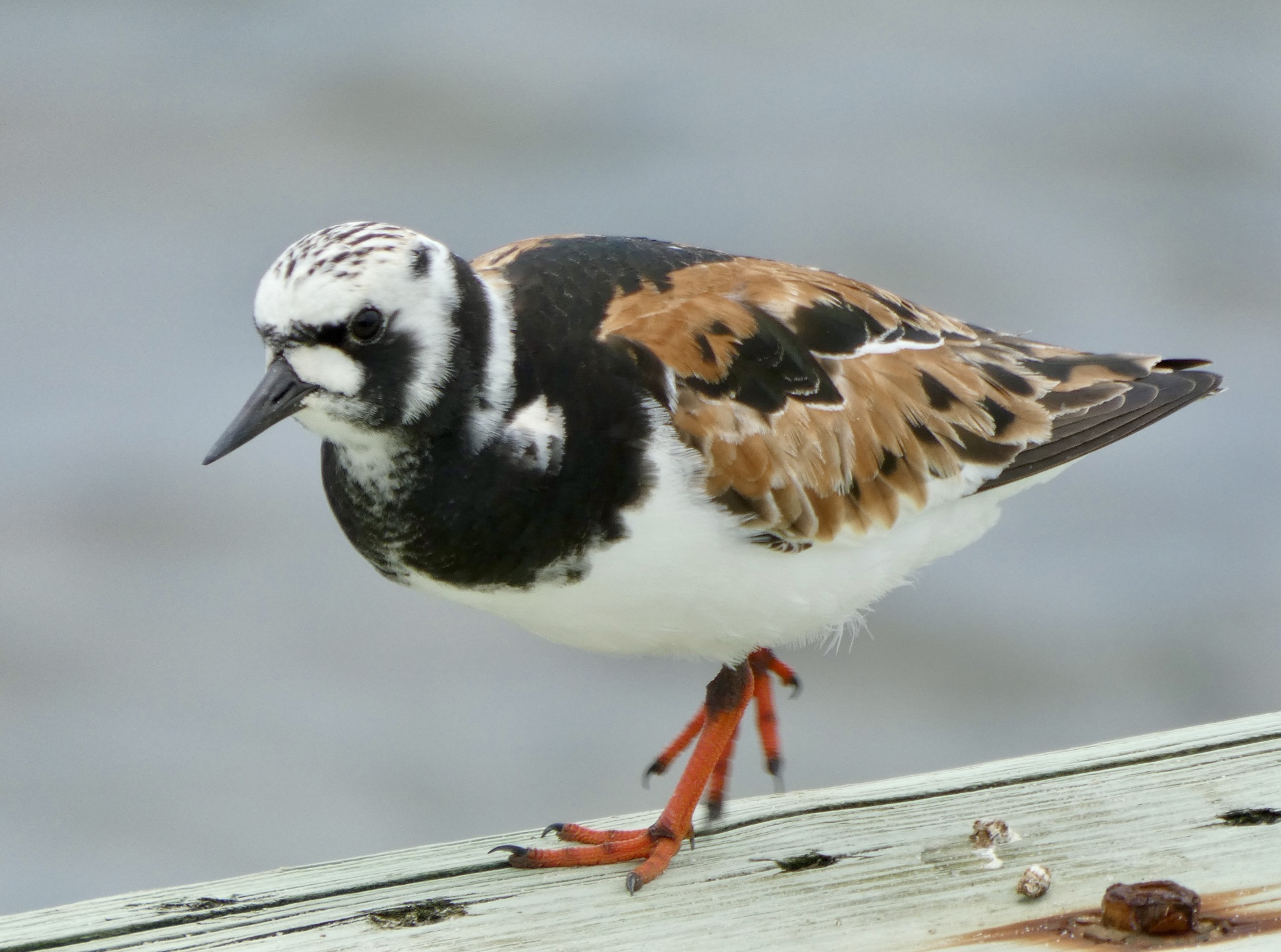 Walking along a waterfront in a North Carolina fishing village, I came upon several ruddy turnstones skittering atop the breakfront. I was excited to find a new to me bird and surprised to learn these are fairly common.