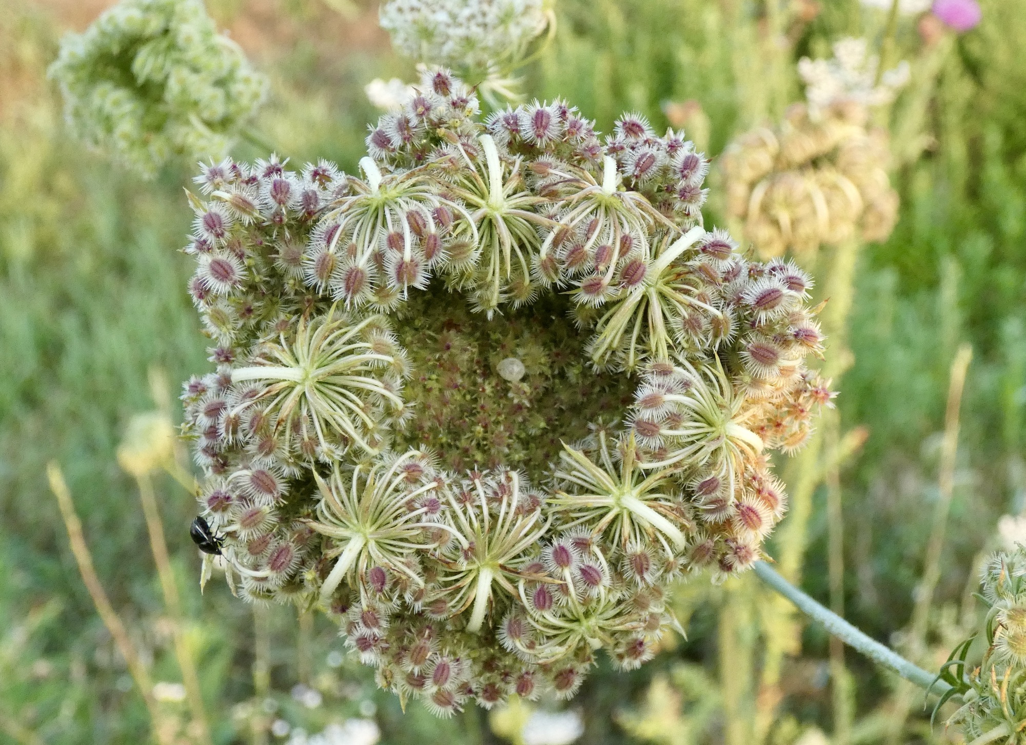 It is not the typical carrot that you buy in the grocery store. It is commonly known as the flower Queen Anne’s Lace.
