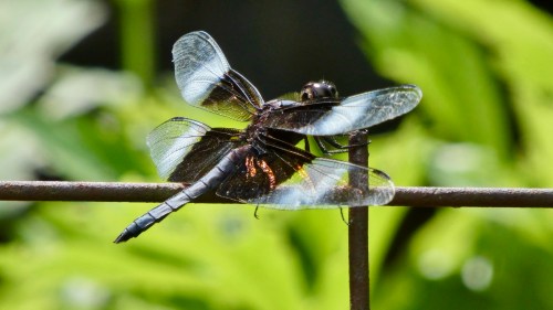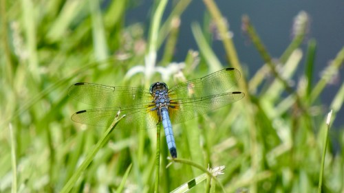 Dragonflies are voracious hunters, consuming other insects, including mosquitoes. They can fly forward, backwards and sideways, as well as hover in place. Their wings have sensory neurons that provide instant feedback to the brain for flight navigation. The neurons in dragonfly wings are a subject of study for design of more efficient aircraft. Particularly the eastern amberwing (captured above) with over 3,000 wing sensors in its four tiny wings.